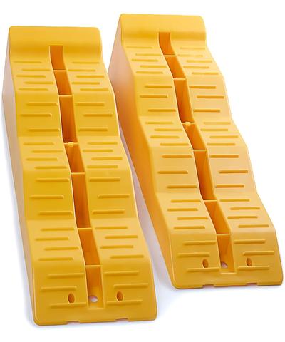 Rampas de nivelación RV-Nivelador de caravana o remolque/cuñas de rueda para estabilizar el suelo irregular y el estacionamiento-Juego de 2 bloques, amarillo